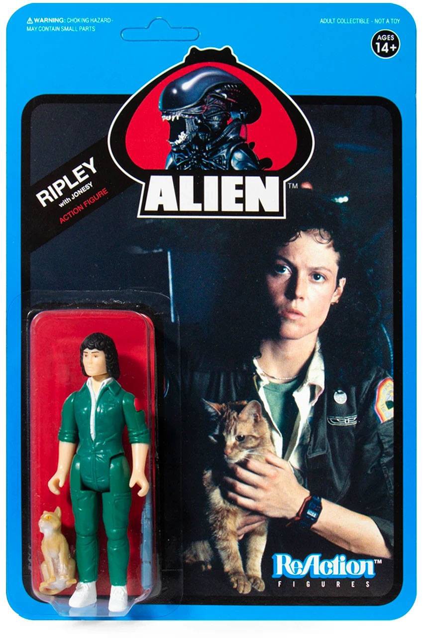 "In space no one can hear your scream..." Alien returns with Wave 3 of the 3.75" ReAction Figure series on Limited Edition Blue Cards! This assortment includes Ripley (with Jonesy), Dallas, and Xenomorph with bloody open mouth.
