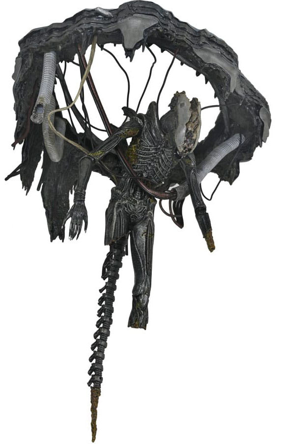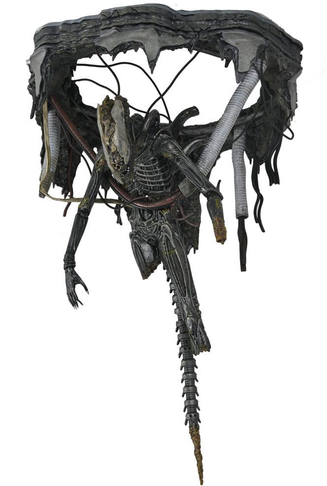 the very blood that gave scientists access to the DNA of the ultimate killing machine. This deluxe figure from NECA features posable wires to hang the maimed Xenomorph and includes a display piece of the acid-burned lab ceiling designed for mounting on your wall or ceiling.