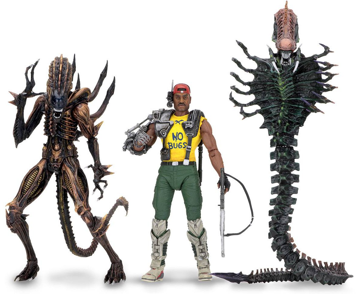 It includes the long-awaited debut of Space Marine Sgt. Apone as well as the frequently requested Snake Alien and Scorpion Alien. Space Marine Sgt. Apone stands approximately 18 cm tall and features an extraordinary bio-mechanical right arm and heavy-duty grenades on his back. The figure is highly articulated and comes with a rifle accessory. Snake Alien feature a 30 cm long bendable tail and ball-jointed fingers for attacking its unlucky prey. Scorpion Alien has over 30 points of articulation. Both highly detailed figures measure over 23 cm tall.