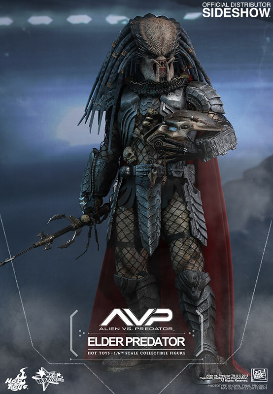 Sideshow Collectibles and Hot Toys are delighted to revisit this Yautja leader and present the new highly detailed Elder Predator sixth scale figure from AVP! The movie-accurate Elder Predator collectible figure is specially crafted based on his image in the film, featuring a newly developed head sculpt with detailed likeness, blue colored dreadlocks with distinctive pattern and tribal accessories, the character’s iconic red cape, weapons, and accessories.
