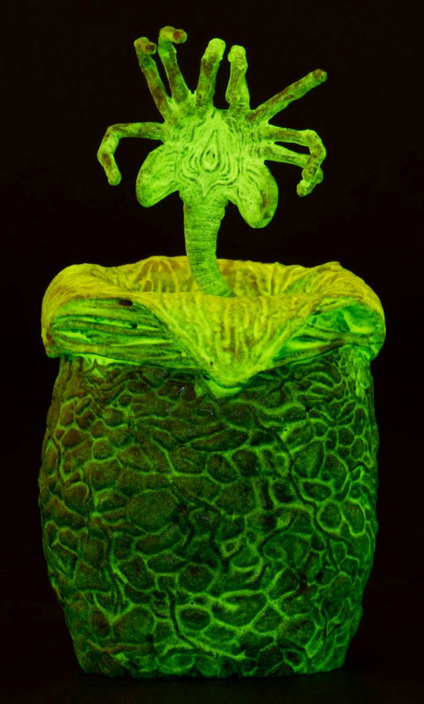 From the terrifying Alien movie series, this eerie glow-in-the-dark set includes 6 Xenomorph eggs and 3 facehuggers with bendable tails. They make great diorama pieces, since they're perfectly in scale with NECA's line of 18 cm figures.