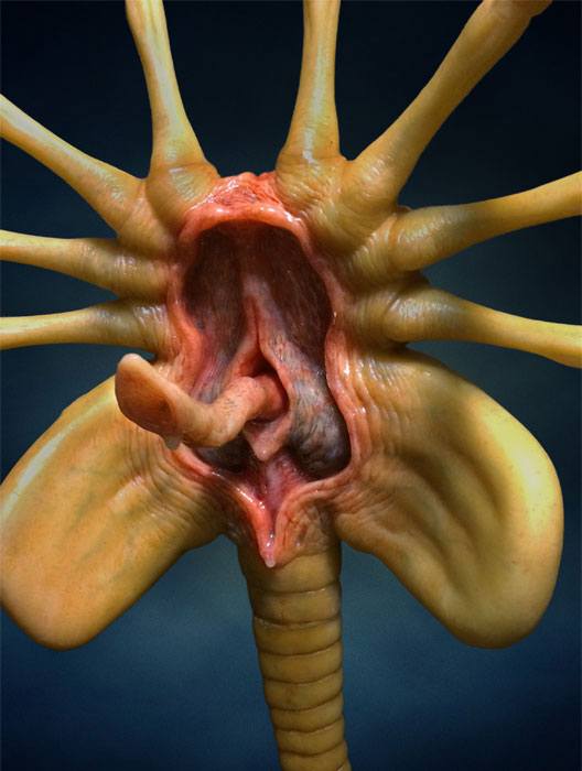 Standing an impressive 28 inches tall, the Facehugger is captured just as it is about to strike its hapless victim, bony "fingers" outstretched and tube like proboscis extended ready for insertion!