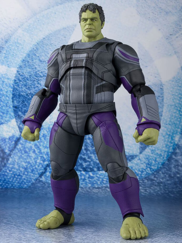 Hulk from Avengers: End Game, joins S.H.Figuarts! Compared to Avengers: Infinity War version, Tamashii digital coloring technology represents his face and head which has gained the appearance of Bruce Banner himself. This set includes 1 optional head and 1 optional set of right/left hand.