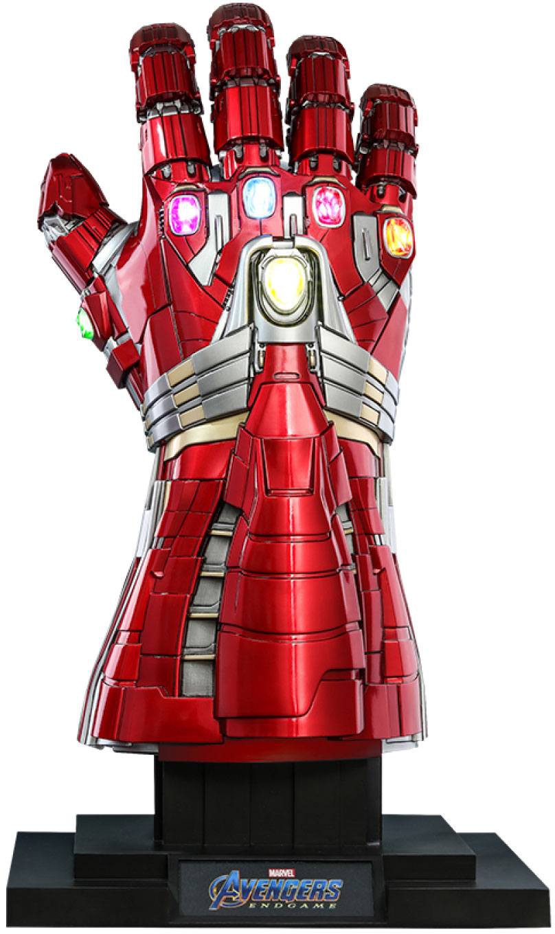 Inspired by the cinematic debut of Iron Man's classic red and gold suit, the Nano Gauntlet Life-Sized Replica stands approximately 71 cm overall in height and features detailed paint application to present the sleek design of this essential armor. The Hulk Version Replica features six LED light-up Infinity Stones with two lighting modes for alternative display, and a custom base that keeps the gauntlet in an upright position.