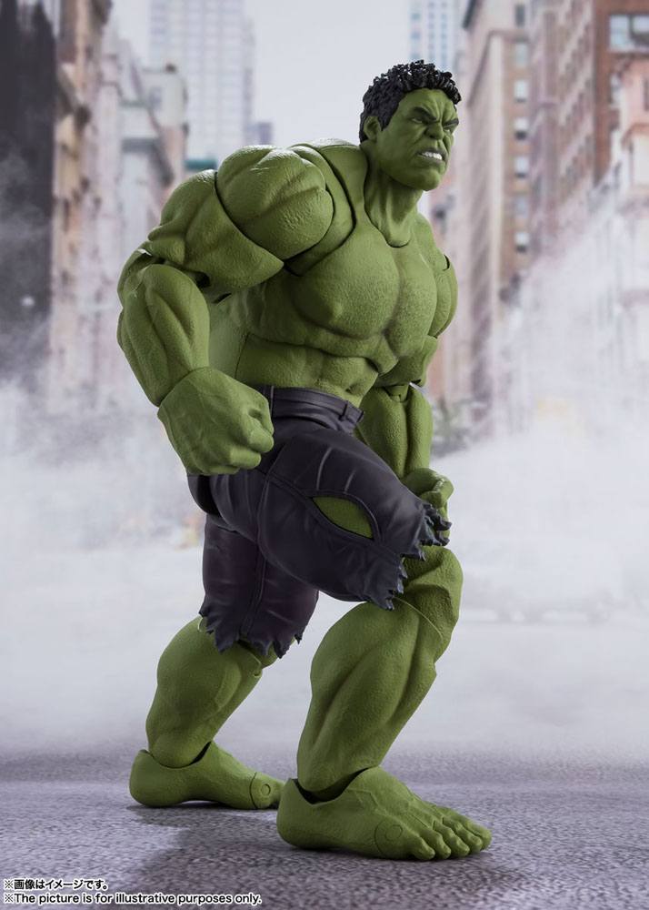 Hulk smash! The Incredible Hulk, as seen in the Avengers films, joins S.H.Figuarts with a completely new sculpt. Powerful musculature is captured with cutting-edge posing technology. Digital coloring faithfully captures his appearance and facial features. The Avengers assemble when you combine Hulk with the other heroes (sold separately)!