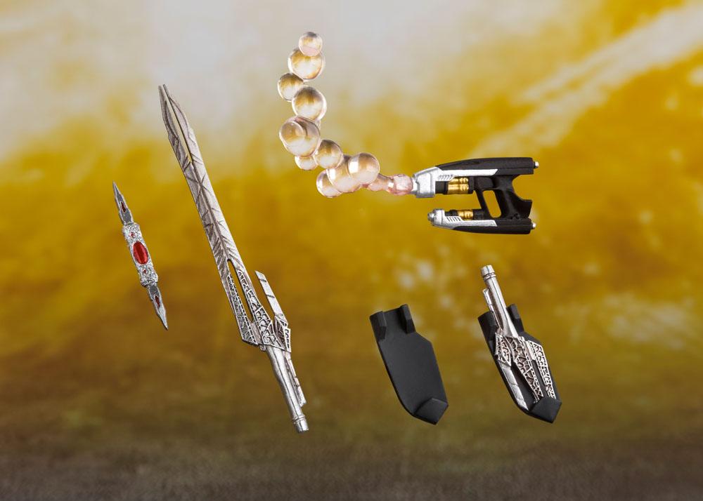 Guardians of the Galaxy's Gamora joins S.H.Figuarts! The figure includes both her sword and the knife she received from Thanos as a girl. Even better, the set comes with Star-Lord's blaster and bubble effect parts, letting you re-create the dramatic scene between the pair on Knowhere.