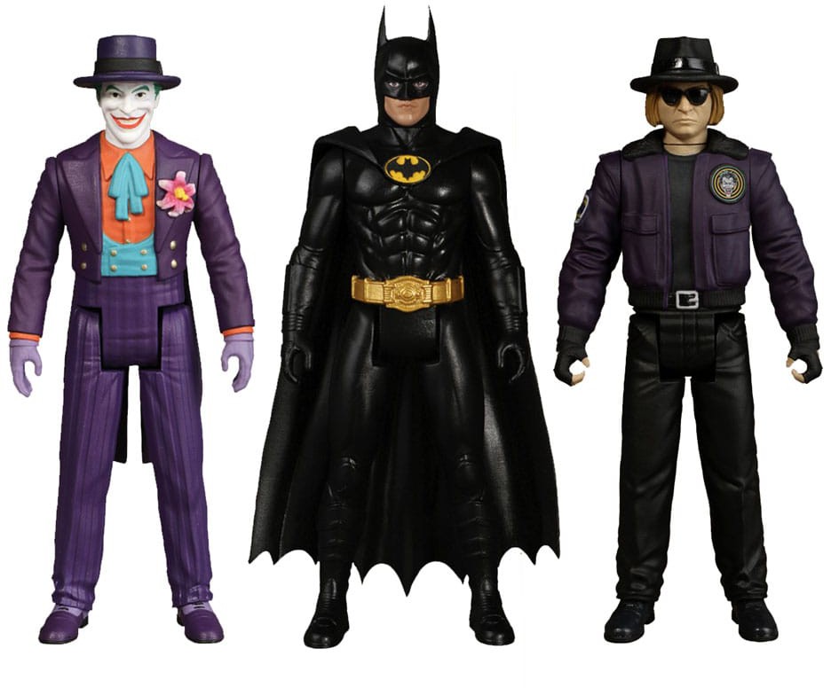 Based on Tim Burton's groundbreaking 1989 film, the 5 Points Batman (1989): Assortment features Batman, Joker, and Joker Goon (two figures in one!)-each complete with their own interchangeable heads, arms, and accessories. Each figure is individually packaged in a retro style blister card, perfect for display.