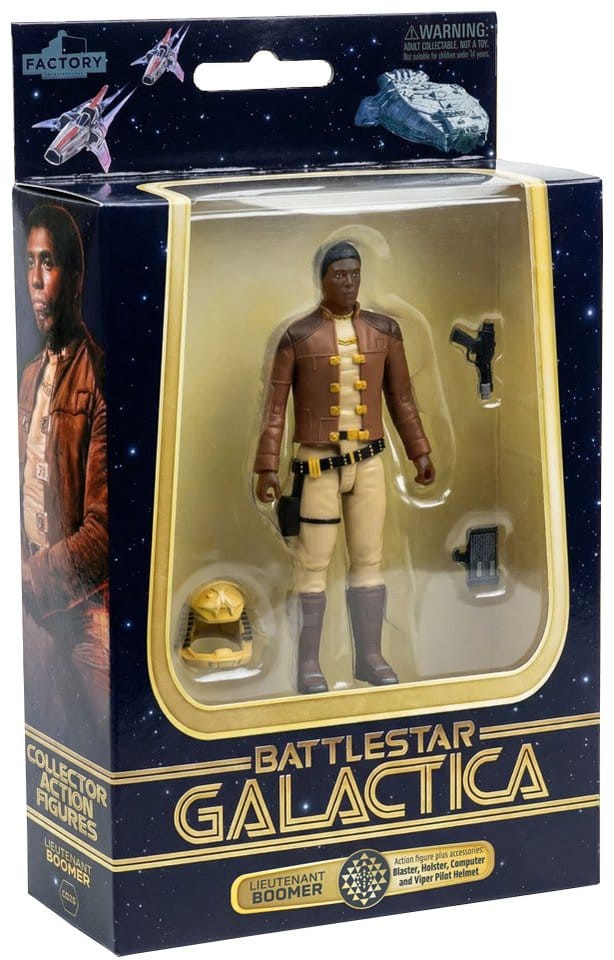 Lieutenant Boomer includes removable pilot helmet, holster, blaster, and leg computer.