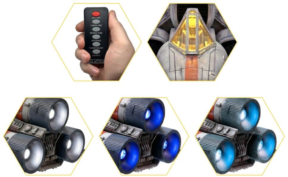 Fra den klassiske 1970’er tv-serie Battlestar Galactica kommer Colonial Viper Electronic Vehicle – den ikoniske stjernejager fra Ragtag Colonial Fleet.