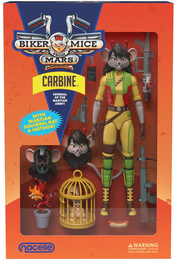 Carbine, den standhaftige og modstandsdygtige general i Mars' hær, leder angrebet mod de onde plutarkiske angribere. Selv om hun arbejder for Mars' regering, er hun også en mangeårig allieret med Freedom Fighters og Biker Mice, især Throttle, som hun deler et komplekst forhold med. Uanset om det er gennem officielle eller hemmelige operationer, driver hendes voldsomme loyalitet over for Mars hende til en ubarmhjertig søgen efter at genoprette planetens engang så frodige landskab, hvor Mars' egernflagermus græssede på lyserøde frøplanter i harmoni.