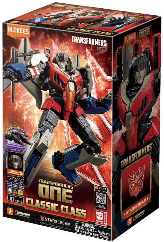 Stil venligst dit spørgsmål om "Blokees: Transformers - Starscream Classic Class Plastic Model Kit" nedenfor, så svarer vi hurtigst muligt!