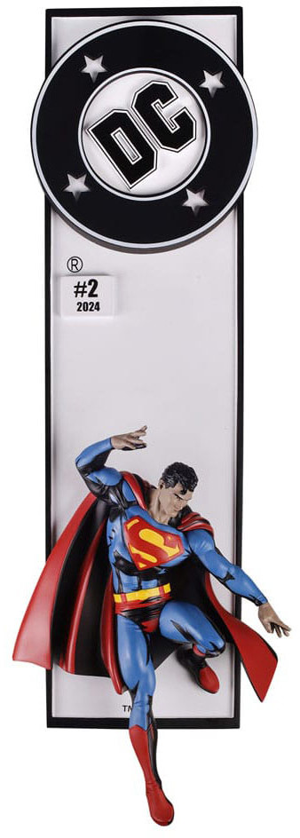 Bringer tegneserier til live! Inspireret af den ikoniske tegneserie viser denne tredimensionelle vægkunsthjørneæske i polyresin en af DC Comics' mest ikoniske figurer - SUPERMAN! Hjørnekassen indeholder en metalplakat med tegneserieomslag og er klar til at blive hængt op og måler ca. 45 cm.