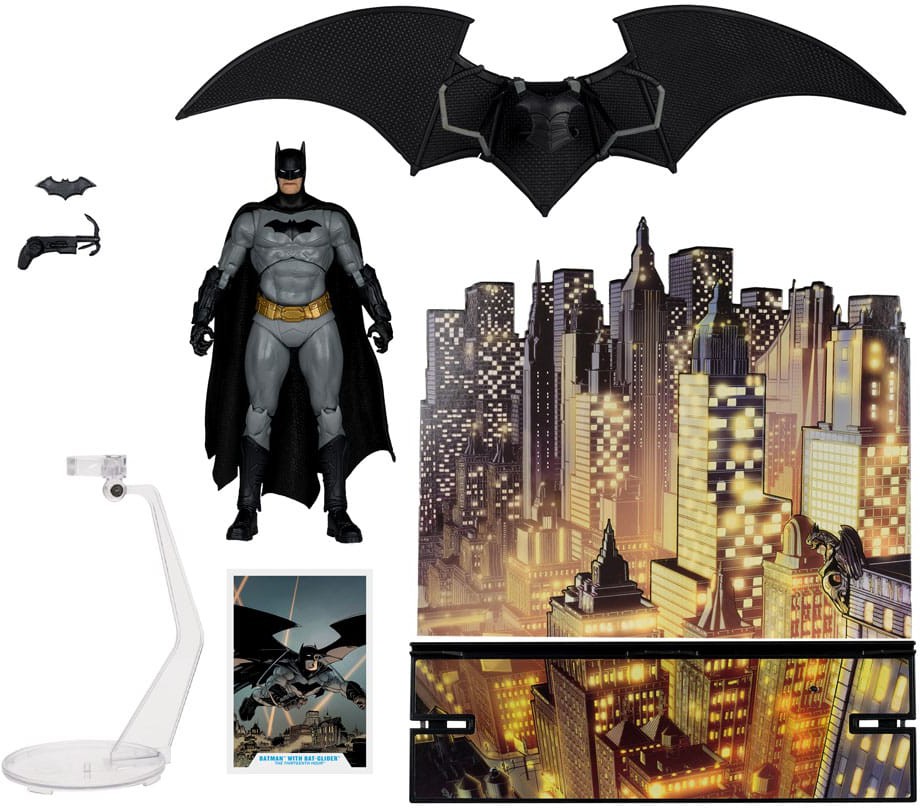 - Accessories include removable Bat-Glider, Batarang, grapple launcher, flight stand and environmental base with backdrop