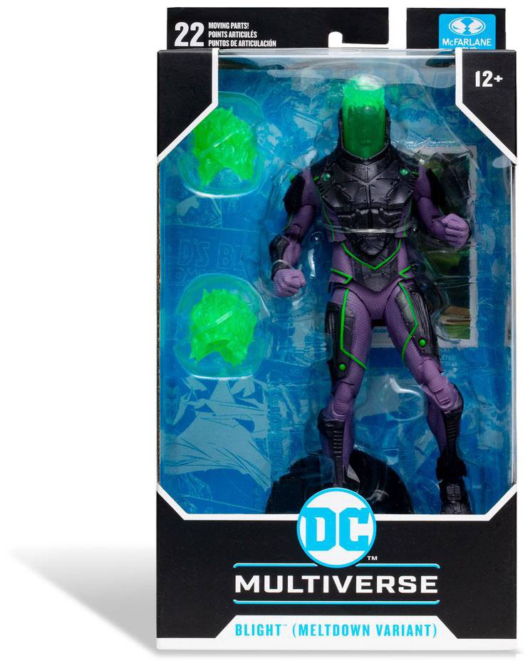 - Blight figure is featured with a flaming helmet based on his look when he is suffering a Meltdown in the DC Comics Batman Beyond