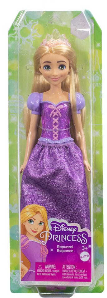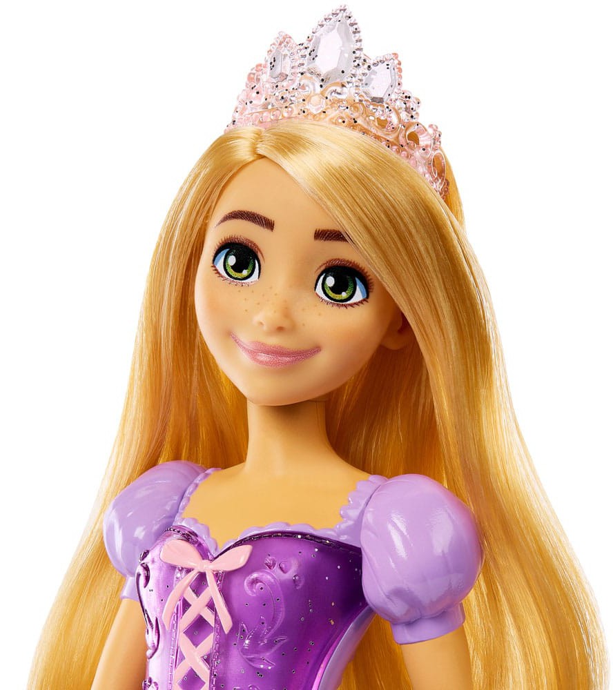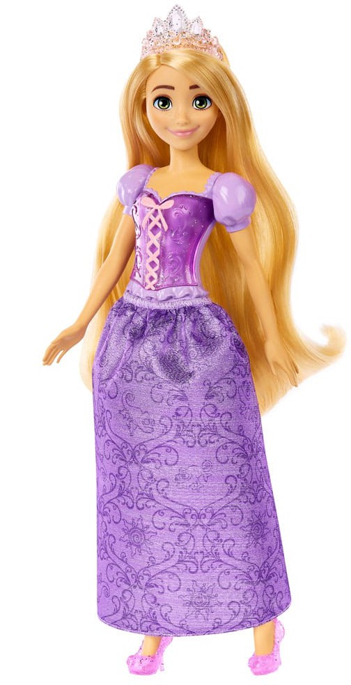 Meet this Rapunzel doll, inspired by the vibrant and creative princess from Disney's Tangled! This posable fashion doll is shown in a sparkling outfit and accessories that include shoes and a tiara. In her signature look from the movie, this Rapunzel doll is ready for any adventure! Doll cannot stand alone.