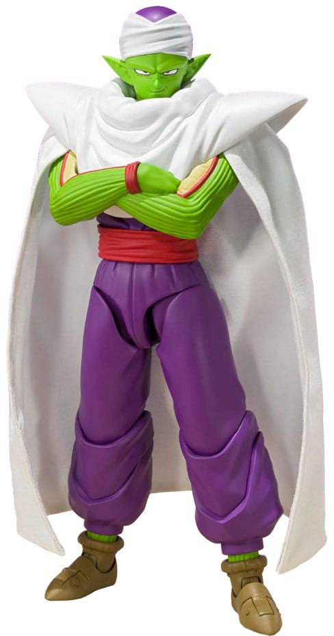 Fra 'Dragon Ball Daima' kommer denne detaljerede S.H.Figuarts-figur af Piccolo. Figuren er cirka 16 cm høj og tilbyder omfattende artikulation for dynamiske positurer. Tilbehør inkluderer tre udskiftelige hoveddele (én med turban og to uden), to udskiftelige ansigtsdele til hovedet med turban, fire par udskiftelige håndledsdele, udskiftelige korslagte arme og en kappe. Perfekt til samlere og fans, der ønsker at tilføje en højkvalitets Piccolo-figur til deres Dragon Ball-samling.