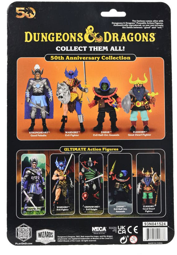 Celebrate the 50th anniversary of Dungeons & Dragons with NECA and WizKids! For this special occasion, we have reimagined the classic Zarak action figure release for the modern collector's market, with special touches to celebrate 50 years of D&D. Featuring a retro paint deco, the evil assassin Zarak fights for coin with a fearsome set of daggers which fit into the sheaths on his belt. This fully articulated 50th Anniversary Zarak action figure comes on blister card packaging that is a tribute to the original release.