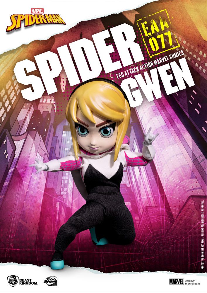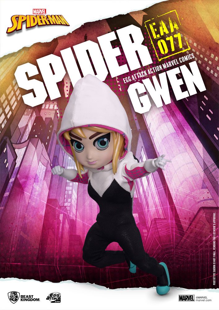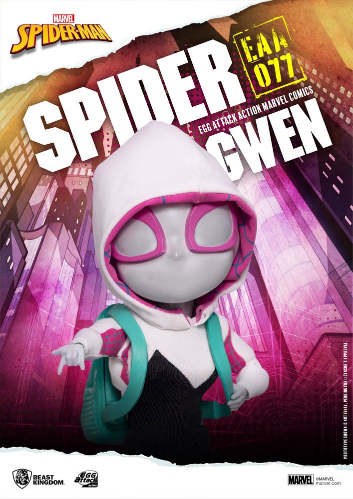 her 'Super-Spidey' senses! The result? The cute yet deadly new take on Spider-Woman! Fancy a ride in the sky or a face-palm to some spider-verse baddies? Then the 2 included web slings will do the trick! Or how about some cool ways to show off Gwen's cool poses? 24 points of articulation, with 5 pairs of interchangeable hands gives you so many ways to show her off, even Stan Lee himself would be proud!