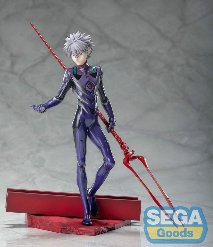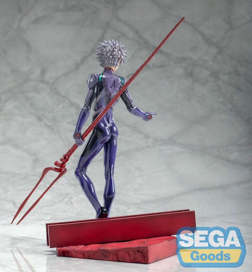 Fra 'Evangelion: 3.0+1.0 Thrice Upon a Time' kommer denne detaljerede PVC-statue af Kaworu Nagisa med Longinus-spydet. Figuren er cirka 21 cm høj og leveres med en base i en trykt æske. Perfekt til samlere og fans af Evangelion-serien, der ønsker at tilføje en højkvalitets repræsentation af Kaworu Nagisa til deres samling.