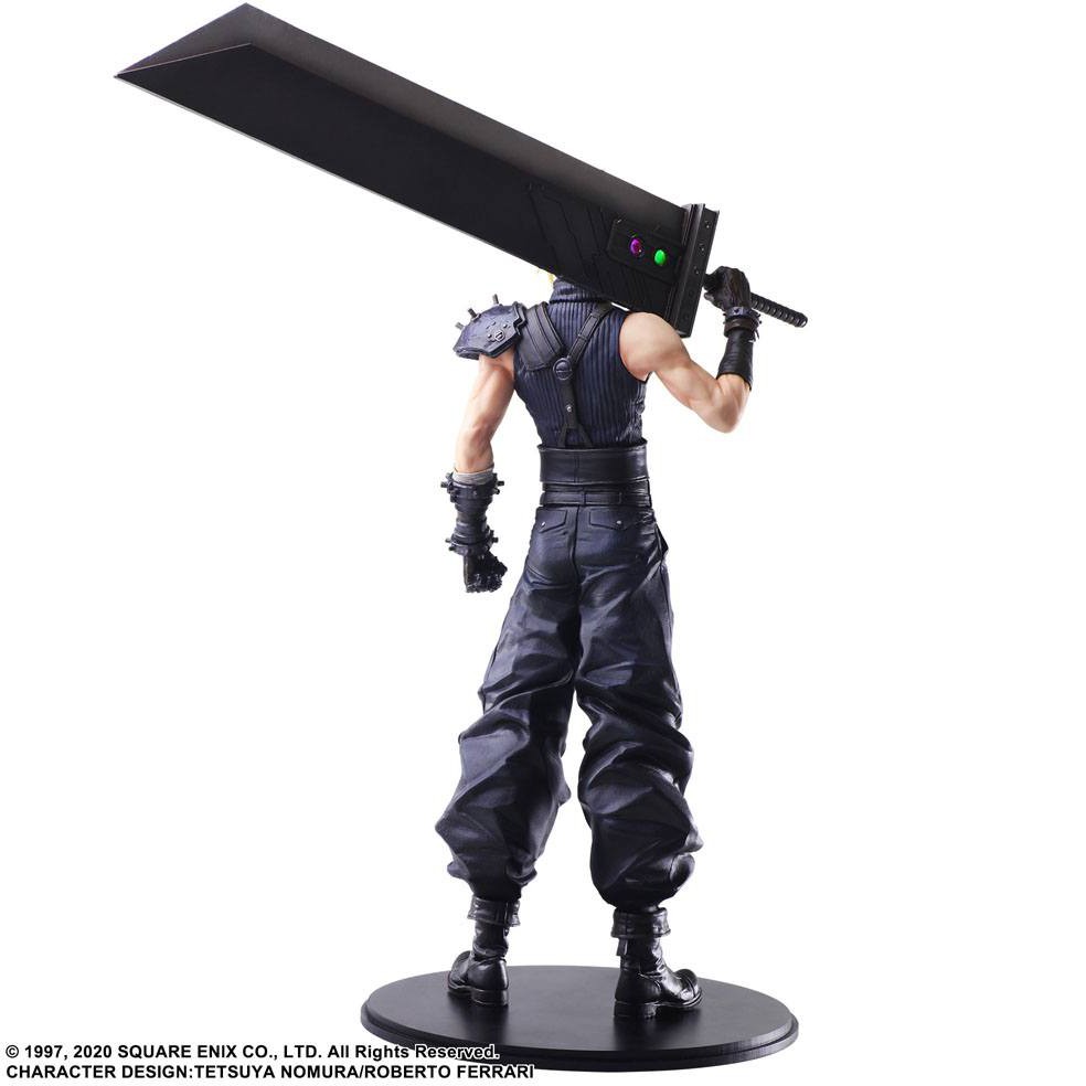 Cloud's dignified expression has been captured, and his hair has been sculpted with attention to detail down to the tips. The materia embedded in the Buster Sword has also been faithfully reproduced. The figure strikes a powerful pose, while carrying a Buster Sword in one hand.