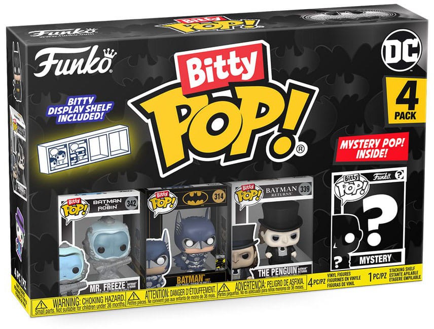 Hver 4-pakke kommer med en sjælden eller hyper-sælsom mystery Bitty Pop! for at fuldende serien.