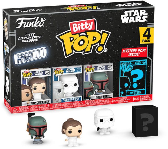 Hver 4-pakke kommer med en sjælden eller hyper-sælsom mystery Bitty Pop! for at fuldende serien.