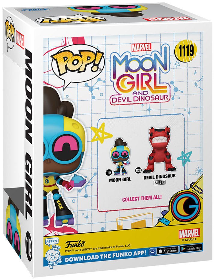 Stil venligst dit spørgsmål om "Funko POP! Marvel: Moon Girl & Devil Dino - Moon Girl" nedenfor, så svarer vi hurtigst muligt!