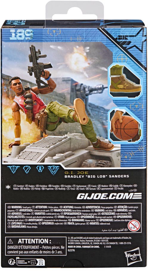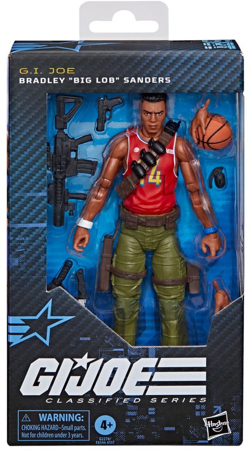 Ny i G.I. Joe Classified Series er Bradley “Big Lob” Sanders, klar til eventyr med mange bevægelige led for maksimal posering. Figuren indeholder 8 karakterinspirerede tilbehør, herunder udskiftelig hånd, hånd med basketball, kniv, granat, “alley-oop” granatkaster, “fadeaway” riffel og våben.