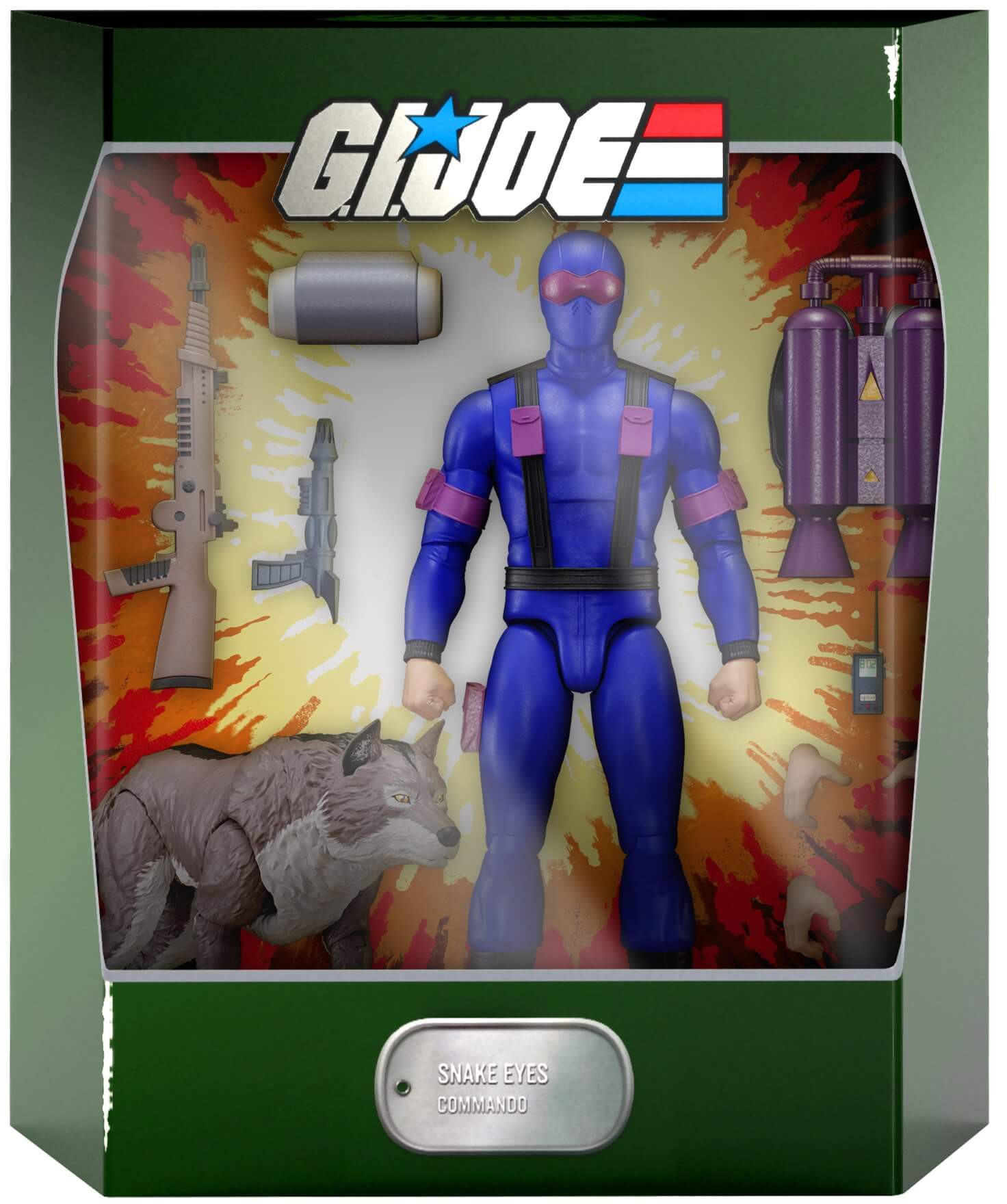 made-to-order 7" scale fully articulated Snake Eyes ULTIMATES! figure comes with interchangeable hands and a variety of accessories, including multiple weapons, a jet pack, and his furry best friend, Timber. Be sure to pull the trigger for the mysterious and dangerous Snake Eyes ULTIMATES! Figure for your G.I Joe collection!