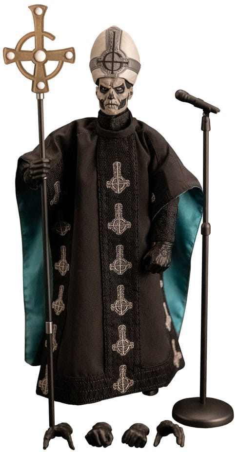 Trick or Treat Studios is proud to present the officially licensed, Ghost - Papa Emeritus II 1:6 Scale Figure. This poseable figure is approximately 12" and has 30+ points of articulation. Fully clothed in the iconic costume and robe, this figure arrives in a beautiful collector's box with a flip-back window display.