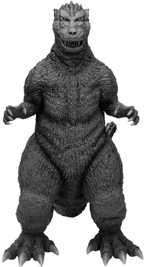 The Kaiju Collective Godzilla (1954) features an all-new seamless body designed with an internal skeleton armature that is durable yet highly posable, a hinged jaw that opens and closes, and is approximately 12" from teeth to tail!