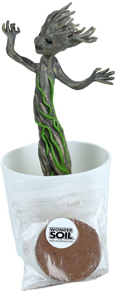 Guardians of Galaxy Grow and Glow Groot includes one glow in the dark Groot in pot, a bag of sprout seeds, a bag of vine seeds, a bag of growing medium, and an educational poster with instructions. He is Groot!