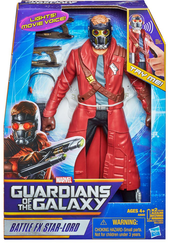 From the Marvel Comics blockbuster Guardians of the Galaxy comes this amazing action figure of Star-Lord featuring light-up goggles and sounds from the film.