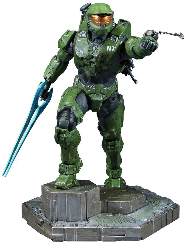 - Inspired by the Key Art for Halo Infinite, the statue features Master Chief heroically surveying the Zeta Halo landscape with his iconic MA40 Assault Rifle at the ready.