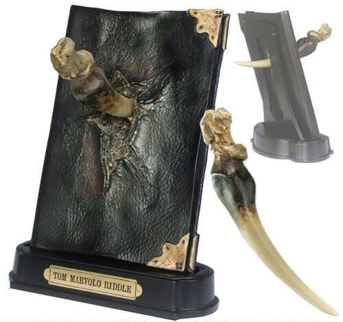 A 23 cm resin sculpt of the Horcrux, Tom Riddle diary with a removable Basilisk fang.