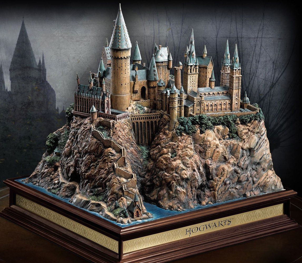 An amazingly detailed and accurate sculpture of Hogwarts. Each building is intricately sculpted and hand painted. The school is set atop a cliff and landscaping surrounds the grounds. A hardwood display base is included. Measures approximately 33 cm in height.