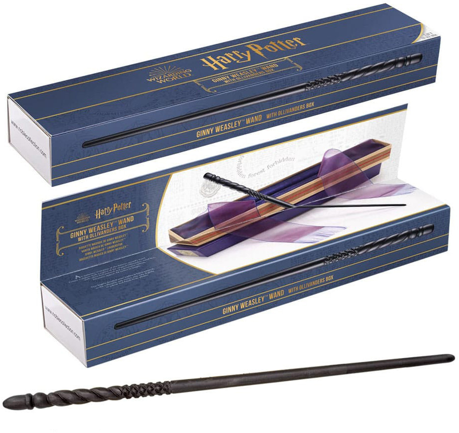 This replica of Ginny Weasley's wand is crafted in hand-painted resin. Measuring in at approx. 14 inches (36cm) long, the wand is newly available in an Ollivanders box.