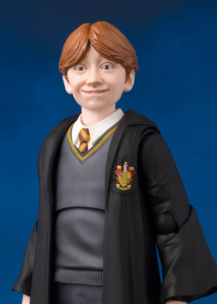 Harry Potter's friend Ron Weasley joins the S.H.Figuarts series! This accurately sculpted, digitally colored, and highly posable action figure includes Ron's rat Scabbers and a magic broomstick. The set also includes an optional facial expression part, three pairs of optional hands, a textbook, and a robe.