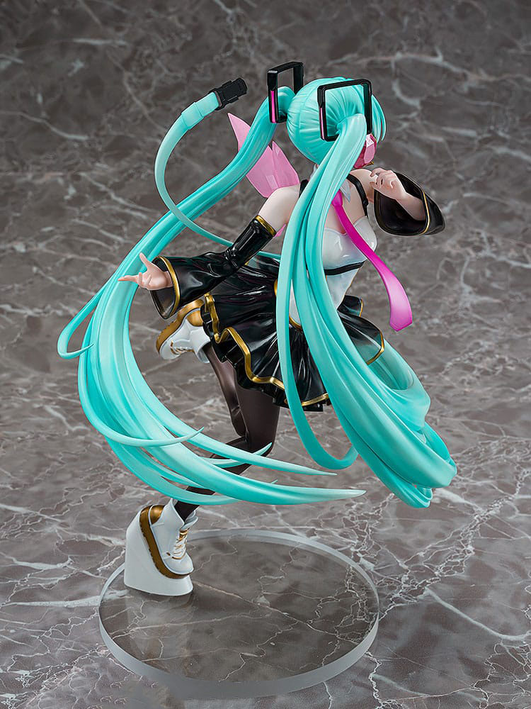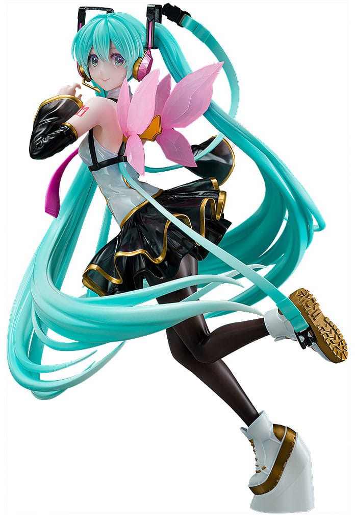 På figuren er hendes kostume blevet redesignet for at give indtryk af, at hun synger og danser på en scene. Kjolens torso har et blankt stof, mens armpuderne og nederdelen er lavet af klare dele med en malet gradient for at give en let effekt. Slutresultatet er en figur, der er lavet med omhyggelig opmærksomhed på de forskellige teksturer. Vi håber, at du vil nyde Mikus søde smil fuldt ud ved din side.