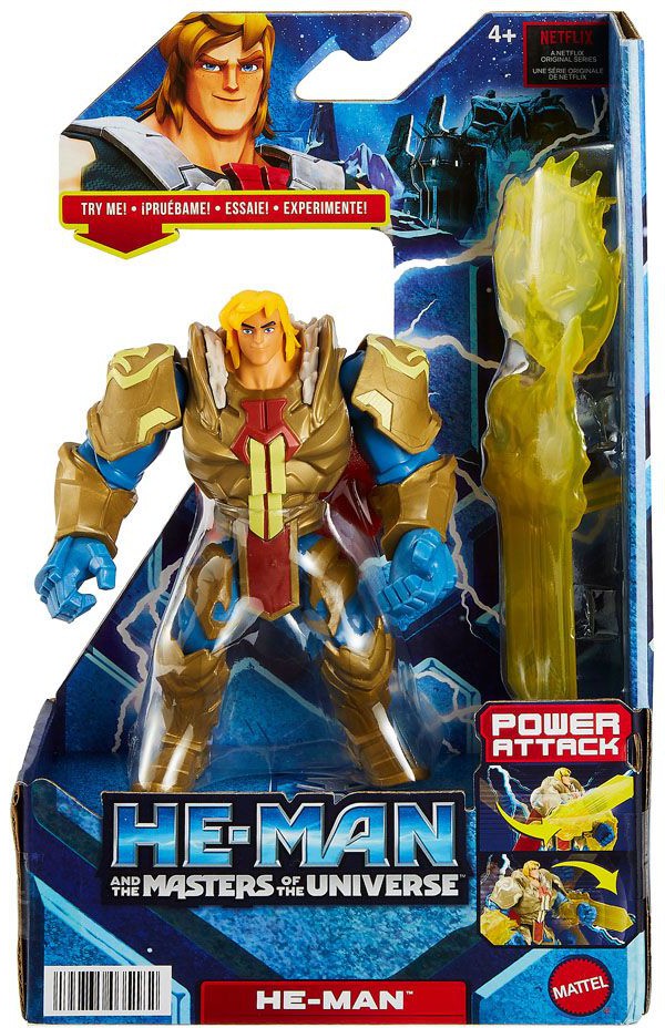 From the Netflix series "He-Man and the Masters of the Universe" comes this action figure. It stands approx. 14 cm tall and comes with accessories in an open box.