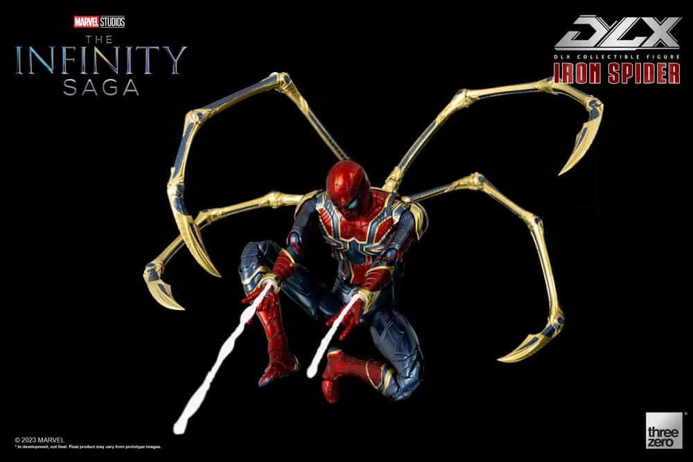 DLX Iron Spider is a fully-articulated figure that stands approximately at 6.5" (16.5cm) tall, and is constructed of threezero's unique die-cast zinc alloy and engineer-grade plastic frame system with 68 points of articulation, providing rigid joints and structural integrity with a high range of articulation that allows for various action poses.