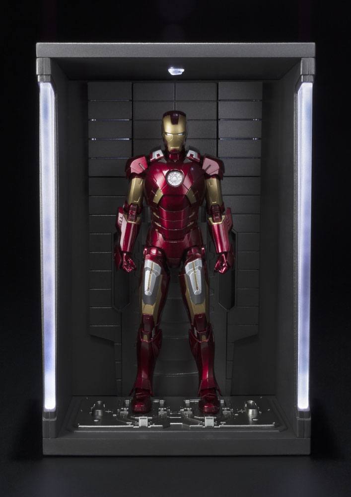 Recreate Tony Stark's lab with the S.H.Figuarts Iron Man Mark VII and Hall of Armor Set!