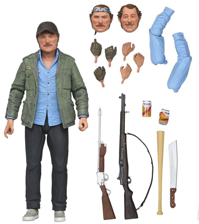 The headstrong captain of the Orca hunts the shark until his hubris leads to his bloody demise. Standing in 7-inch scale, the figure includes multiple interchangeable heads, hands, and arms for an alternate look. Plus, gloved hands, machete, can, crushed can, rifle, and harpoon gun. Comes in collector-friendly window box packaging with opening front flap.