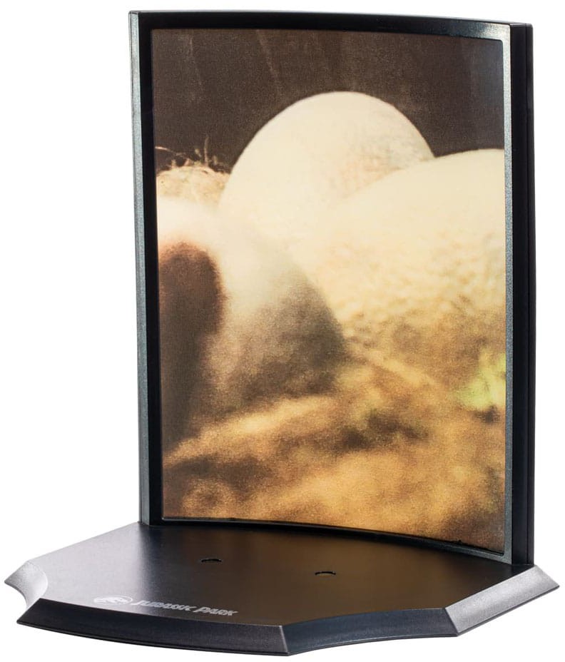 A hand-painted plastic diorama of a Raptor egg. The birth of a baby Raptor.