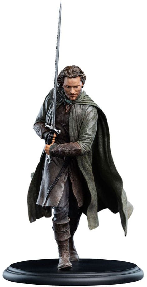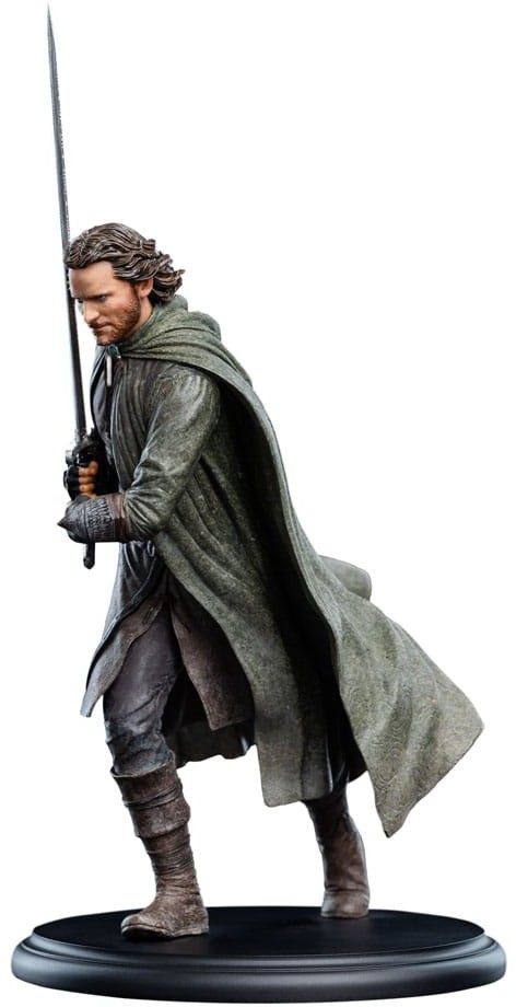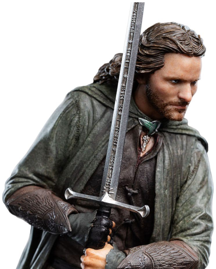 Fra spændingen i Aragorns holdning til den fine detaljering af Andúril – alt udstråler bevægelse, der er klar til at eksplodere, som om han kunne storme frem hvert øjeblik.