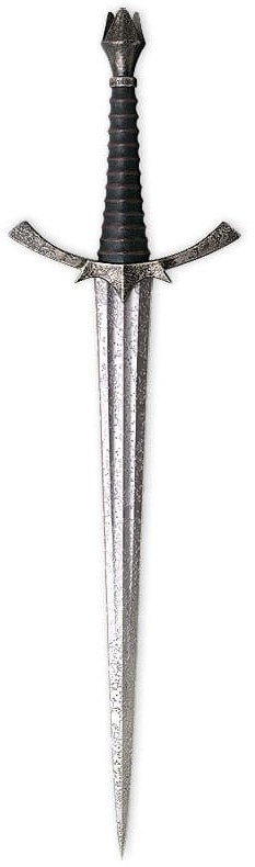 Den officielt licenserede replika er ´ældet´ og givet et kampbrugt udtryk med en patineret, syreætset finish for at efterligne filmens originale genstand så præcist som muligt. Det 43 cm lange blad er fremstillet af 420J2 rustfrit stål i stedet for originalens kulstål, for at sikre lang holdbarhed med minimal vedligeholdelse. Parerstang og knap er støbt i metal, og grebet er beklædt med ´ældet´ ægte læder.