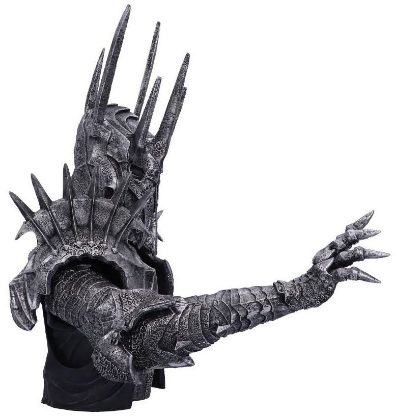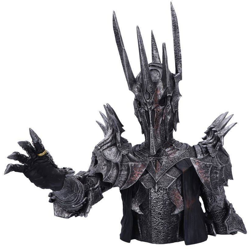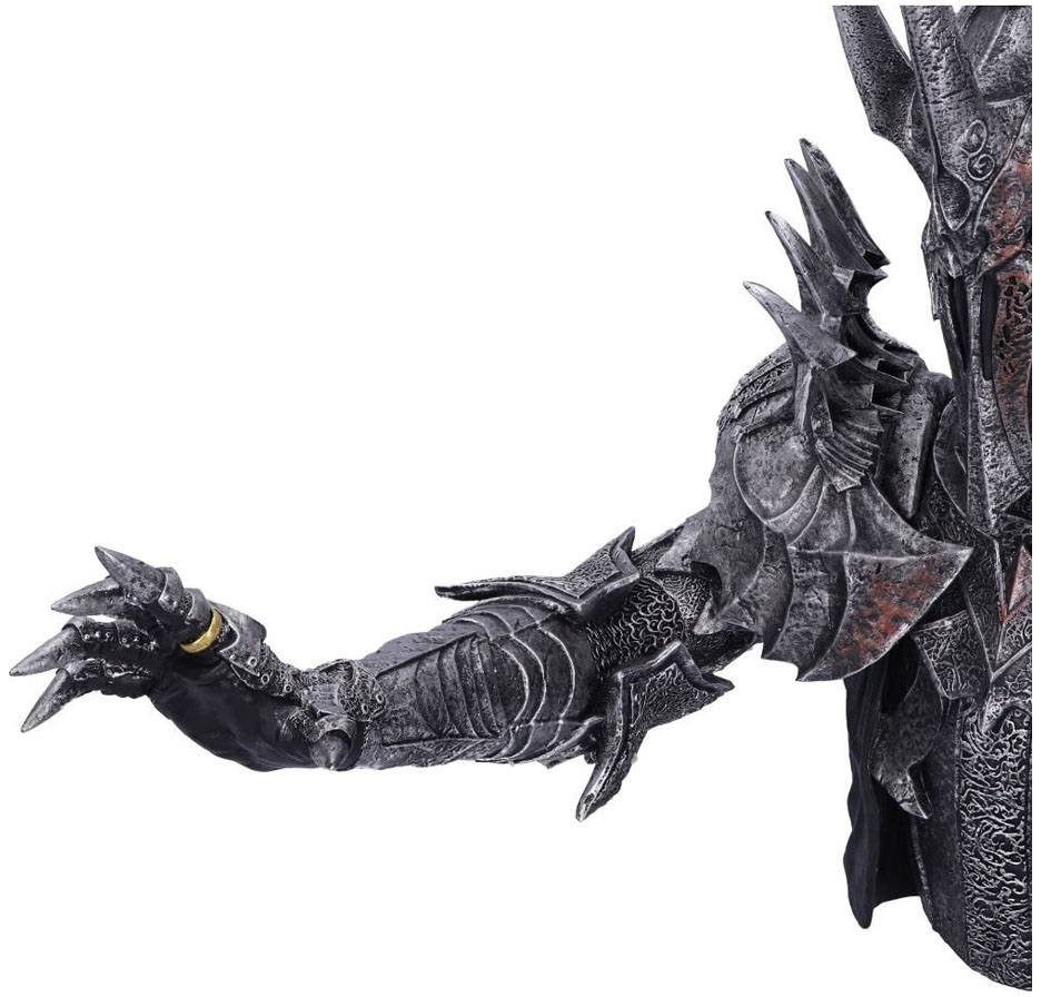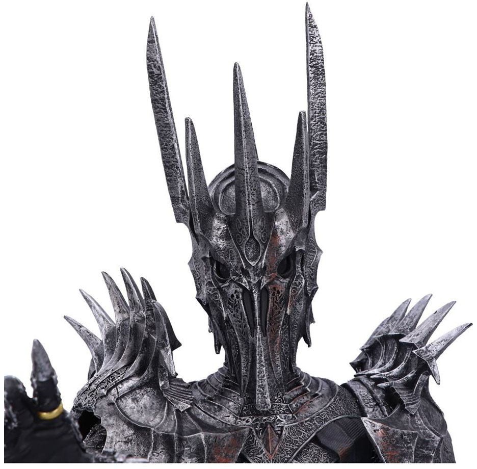 Conquer all those who stand against you with Nemesis Now's officially licensed Lord of the Rings Sauron bust. Featuring Sauron himself in his recognisable metallic armour and angular helmet, he stands reaching out with the One Ring placed noticeably on his index finger, adding to the second to none detailing of the bust. This exquisitely designed piece is cast as well as the finest 'Elvish' resin before being expertly hand-painted.