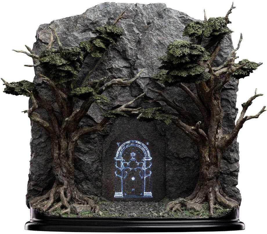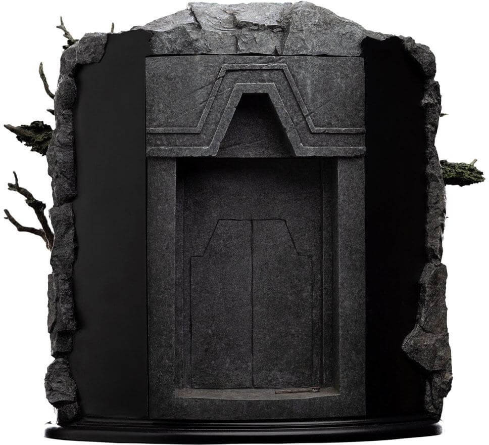 So, it was when the Fellowship came to the Cliffs of Celebdil that they found the Doors closed and surrounded by decay. Even the once beautiful holly trees flanking the entranceway were deathly and pale, their roots drowned by a sickly black pool gathered before the gate. From beneath the murk, unfriendly eyes watched the companions as they paused and sought a way within.