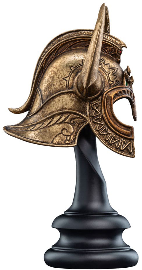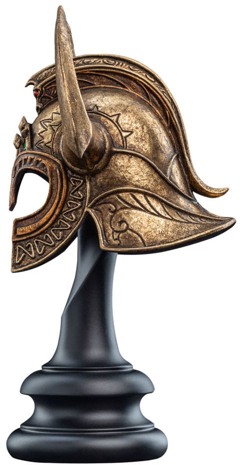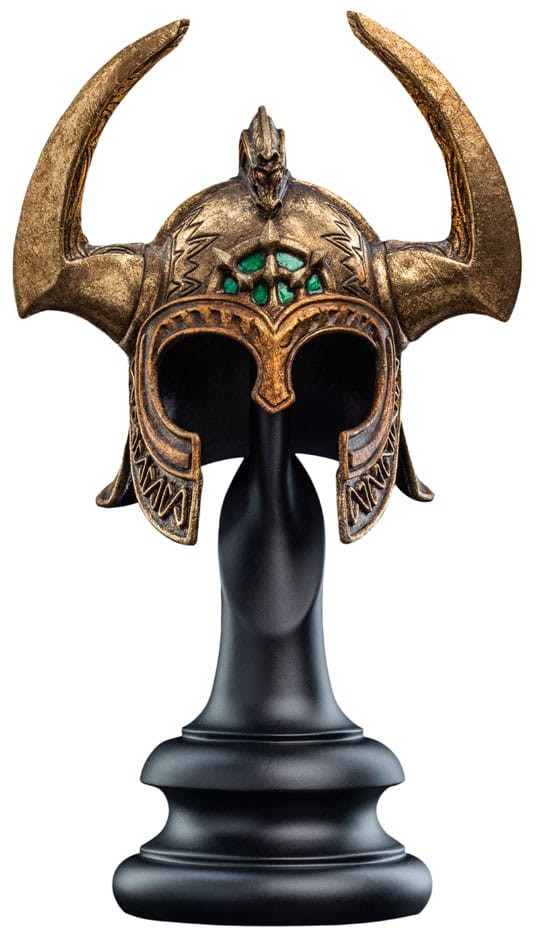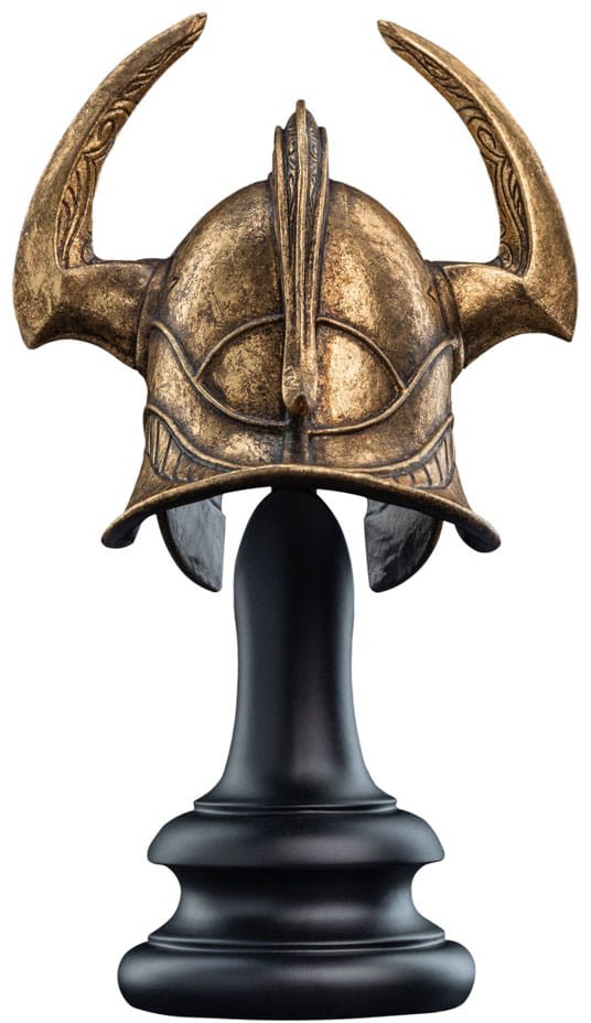 Weta Workshops konceptkunstner Daniel Falconer byggede videre på det, der blev designet til The War of the Rohirrim, og genskabte hjelmen fra den oprindelige 2D-animation som en fuldt funktionsdygtig rustning, der er slidt og beskadiget af historien. Ekspertskulptøren Shaun Bolton skabte derefter designet i ler og gav liv til hver eneste højderyg, bule og slidte kant med den autenticitet, som kun årtiers erfaring kan give. Falconer og Bolton har begge arbejdet på filmtrilogien om Ringenes Herre og har kanaliseret deres dedikation til Midgård ind i dette indviklede miniaturerelikvie, der ikke kun indfanger kong Helms kraft, men også Rohans tidløse arv.