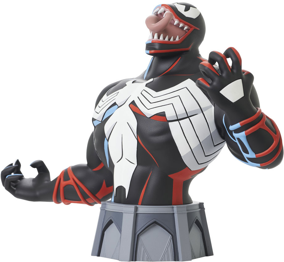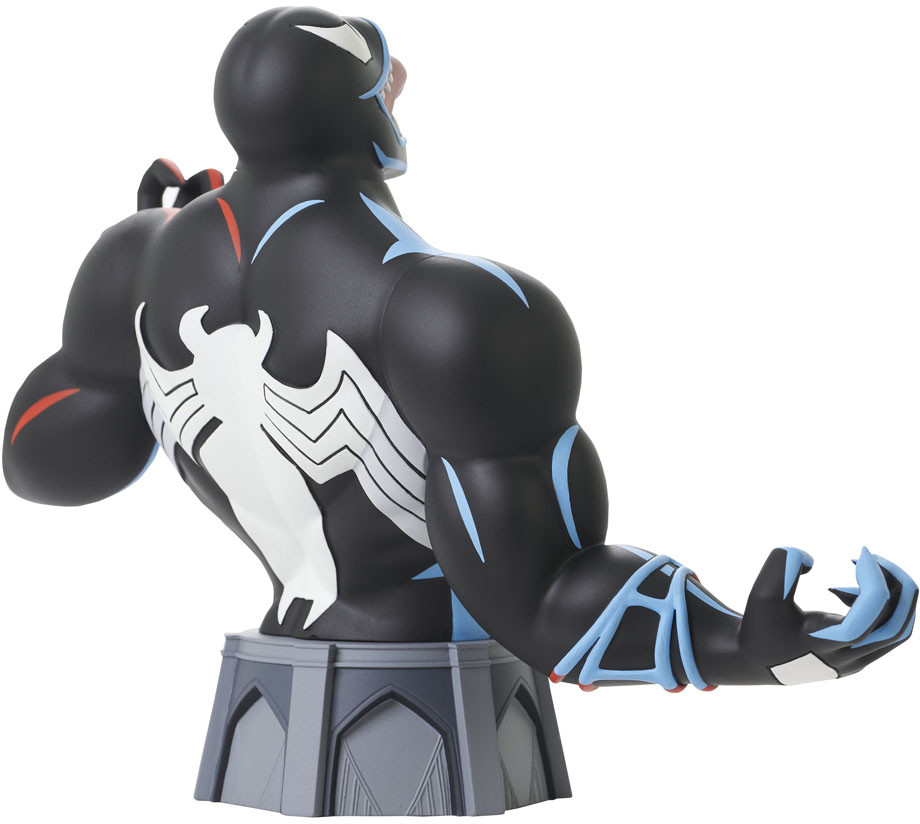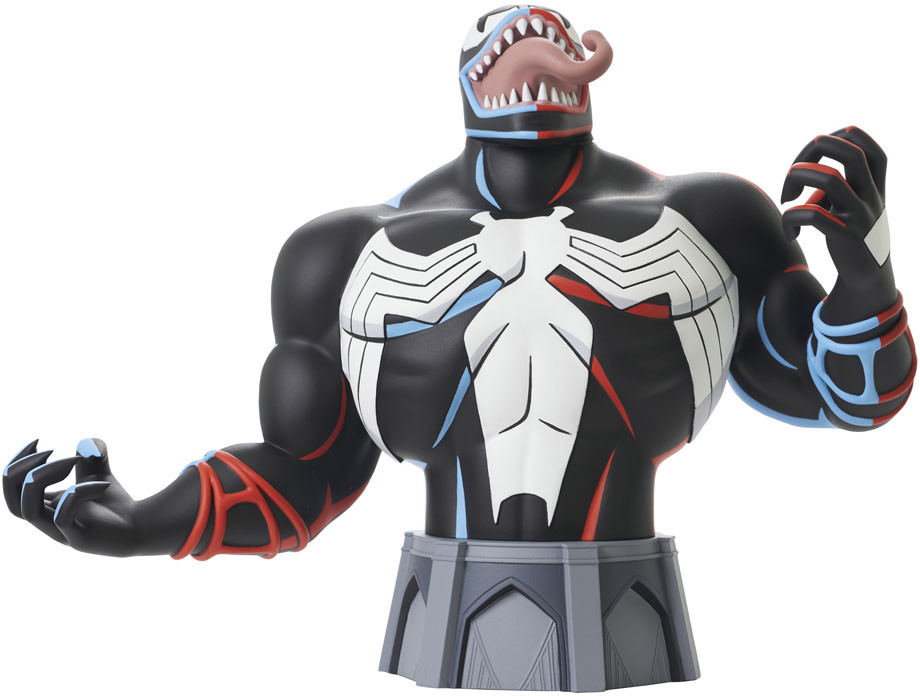 Look out, Spider-Man! Spinning out of the 1990s classic Spider-Man: The Animated Series, this in-scale mini-bust of Venom captures him in his animated appearance, and he's ready to feast on Spidey's brains! This approximately 6" mini-bust is limited to only 3000 pieces and comes packaged in a full color box with a numbered certificate of authenticity. Designed by Barry Bradfield, sculpted by Paul Harding!